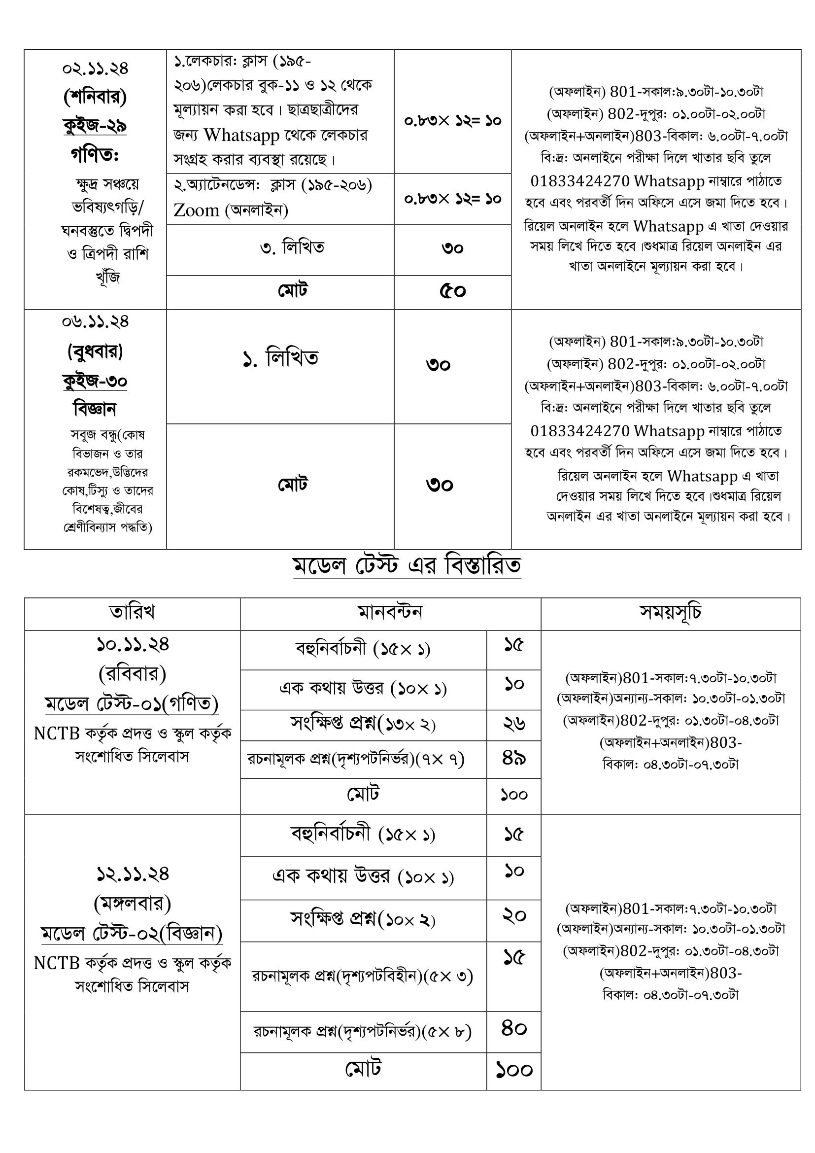 Class Eight Schedule For October and November Page-05