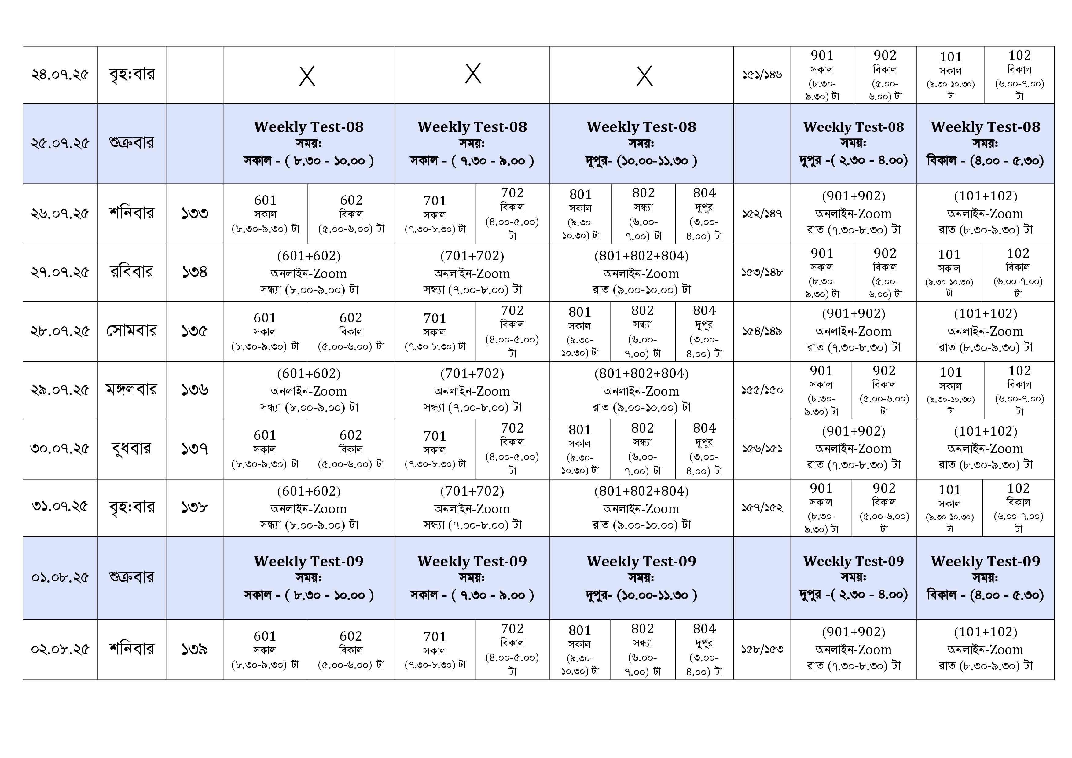 Class Six to Ten Schedule For - July ( Page-03 )
