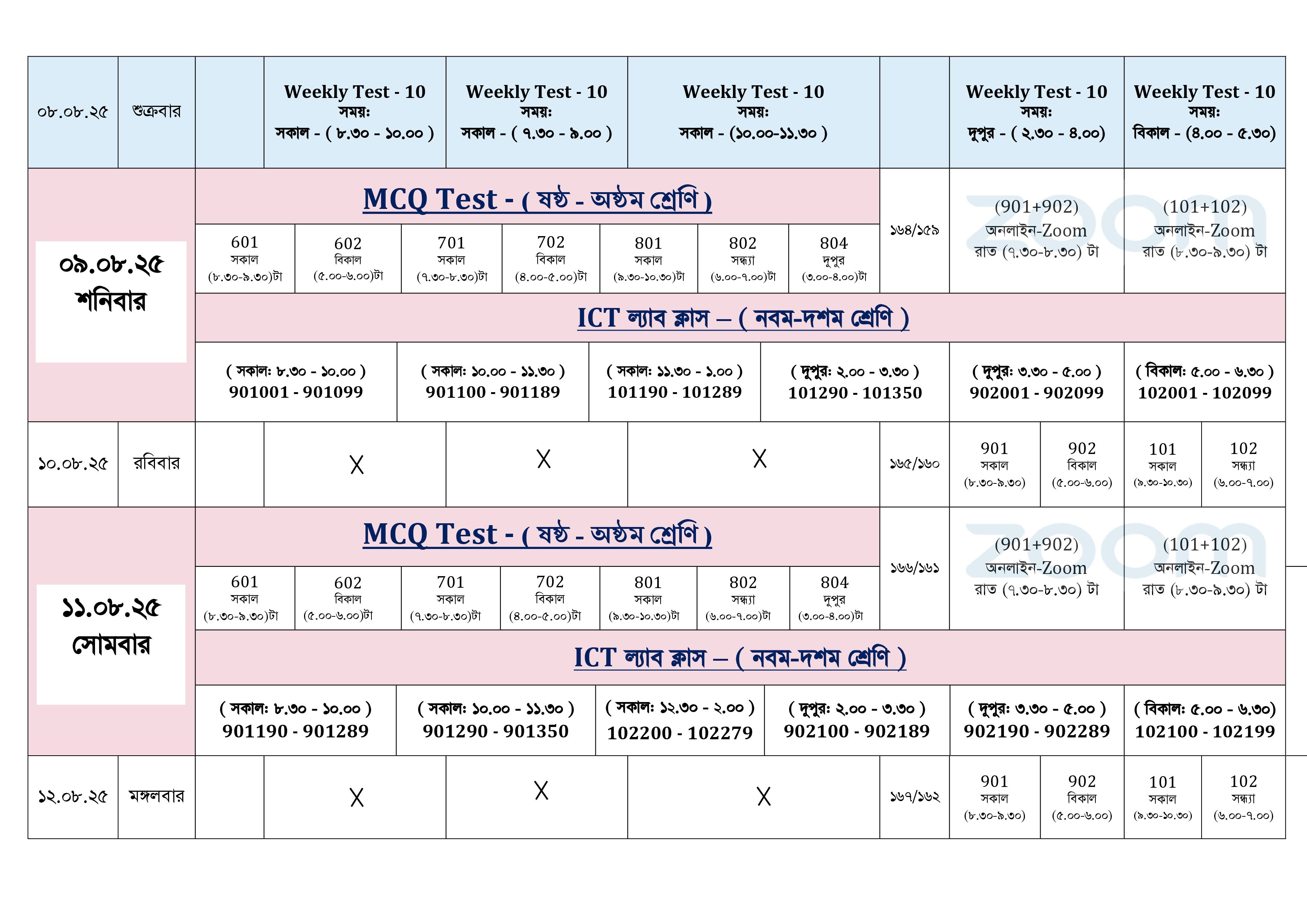 Class Six to Ten Schedule for - August ( Page-02 )