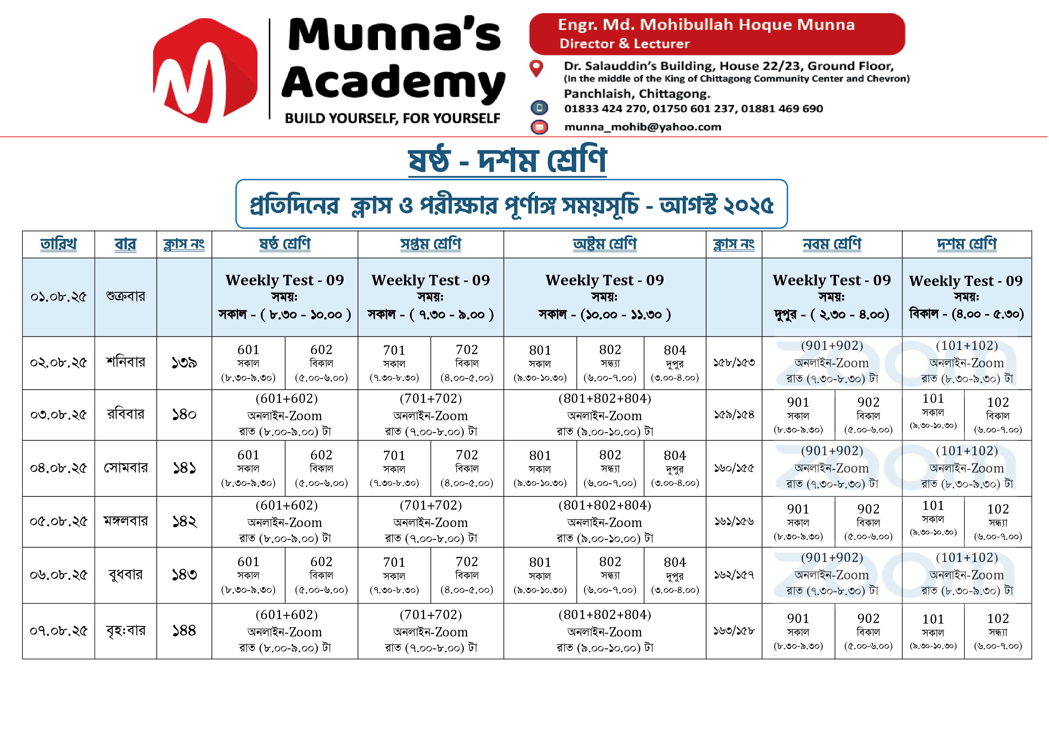 Class Six to Ten Schedule for - August ( Page-01 )